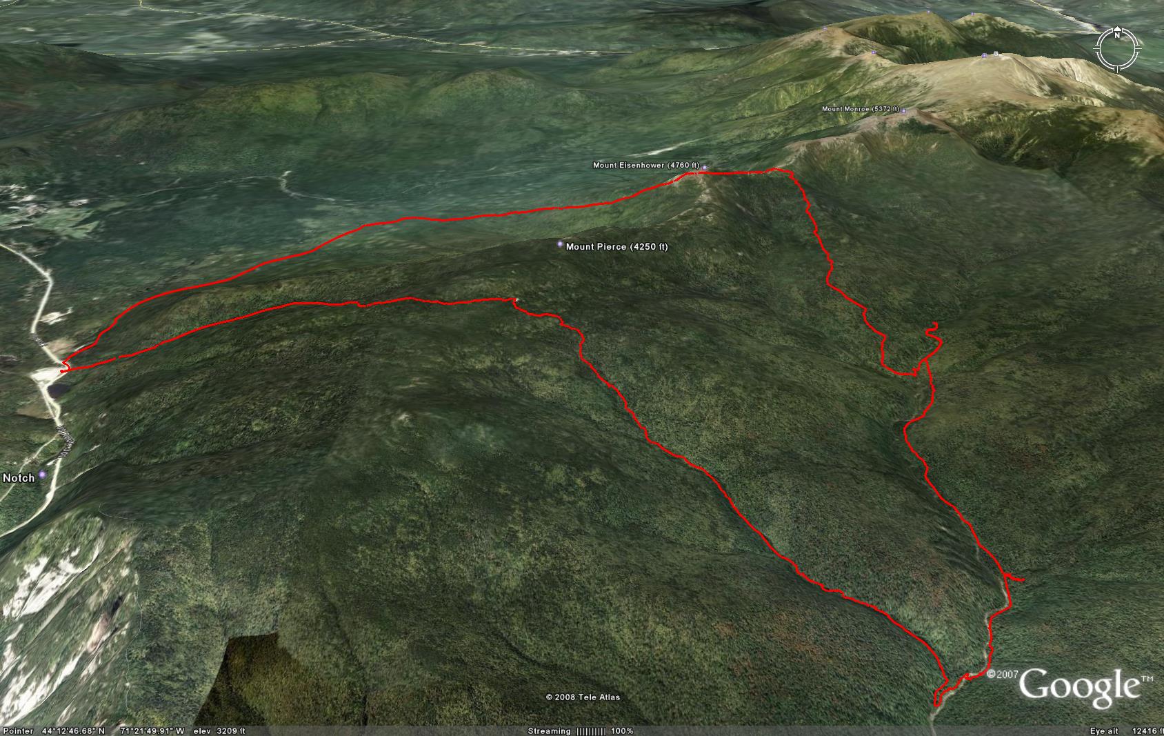 The following is a picture from Google Earth which does not reflect the weather condition of the hike.