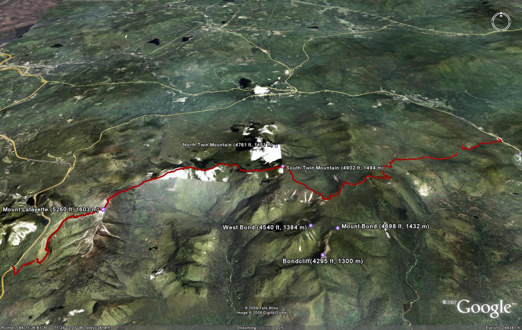 The following is a picture from Google Earth which does not reflect the weather condition of the hike.