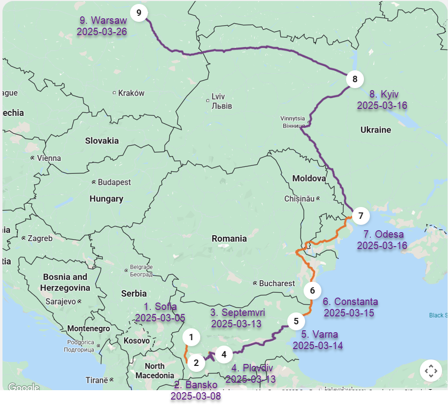 Trip to Bulgaria, Romania, Ukraine and Poland in March 2025